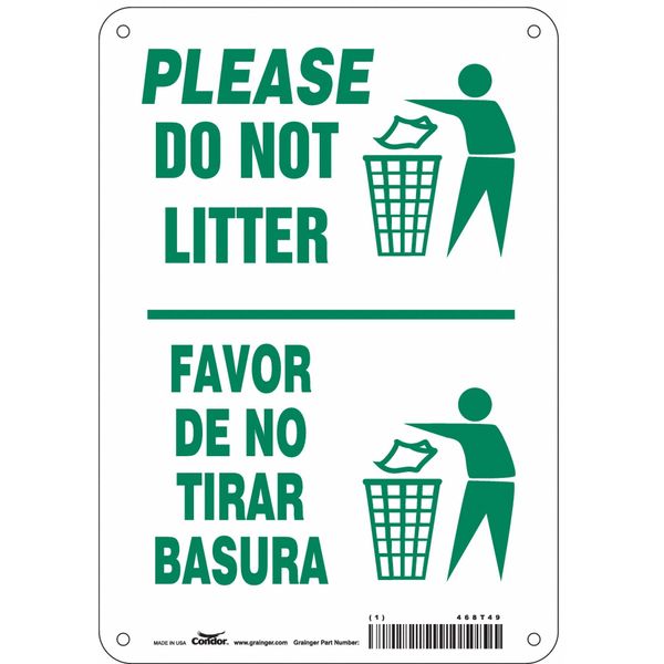 Safety Sign, 10 in Height, 7 in Width, Aluminum, Horizontal Rectangle, English, Spanish, 468T49SKU G5562958Categories SafetyDescription Safety Sign, Horizontal Rectangle, Number of Printed Sides 1, English, Spanish, Sign Legend Please Do Not Litter/Favor De No Tirar Basura, Sign Legend Background Color White, Sign Legend Style Symbol and TextgraingerSKU: 468T49, mscSKU: , zoro_no: G5562958, mongo_id: 65bbe8069a749db82276d49b