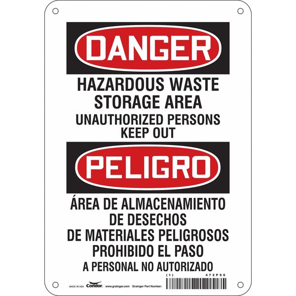 SKU G5888878Categories SafetyDescription Safety Sign, Horizontal Rectangle, Number of Printed Sides 1, English, Spanish, Sign Format Traditional OSHA, Sign Legend Hazardous Waste Storage Area Unauthorized Persons Keep Out/Area De Almacenamiento De Desechos De Materiales Peligrosos. Prohibido El Paso A Personal No Autorizado, Sign Legend Background Color White, Sign Legend Style TextgraingerSKU: 472P90, mscSKU: , zoro_no: G5888878, mongo_id: 65bbe8069a749db82276d4a6