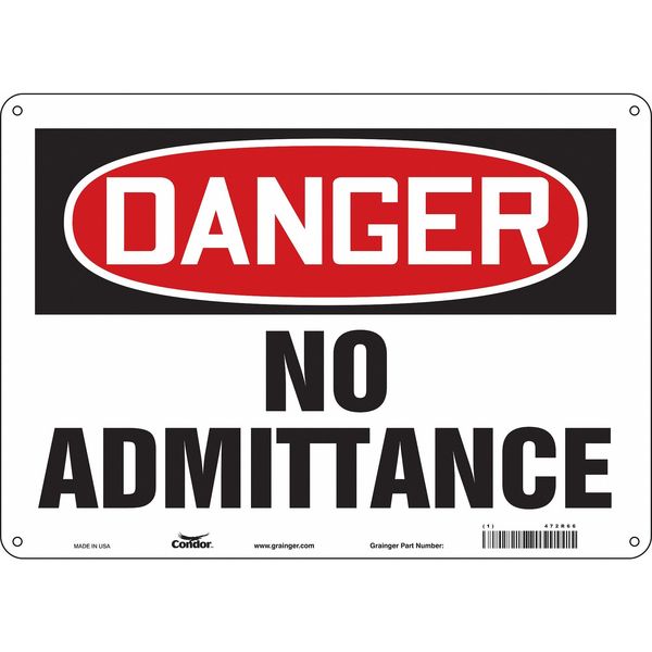 Safety Sign, 10 in Height, 14 in Width, Aluminum, Horizontal Rectangle, English, 472R66SKU G5215968Categories SafetyDescription Safety Sign, Horizontal Rectangle, Number of Printed Sides 1, English, Sign Format Traditional OSHA, Sign Legend No Admittance, Sign Legend Background Color White, Sign Legend Style TextgraingerSKU: 472R66, mscSKU: , zoro_no: G5215968, mongo_id: 65bbe8069a749db82276d4e5