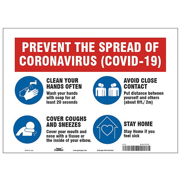 SKU G6616207Categories SafetyDescription Prevent The Spread Of Coronavirus Sign, Sign Subject Matter Coronavirus Prevention, Height 10 in, Width 14 in, Sign Material Polyester, Sign Mounting Style Adhesive Surface, Header Prevent The Spread Of Coronavirus (COVID-19)$9.94 / eachWeb price