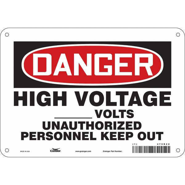 SKU G5819410Categories SafetyDescription Safety Sign, Vertical Rectangle, Number of Printed Sides 1, English, Sign Format Traditional OSHA, Sign Legend High Voltage _______ Volts Unauthorized Personnel Keep Out, Sign Legend Background Color White, Sign Legend Style TextgraingerSKU: 479R28, mscSKU: , zoro_no: G5819410, mongo_id: 65bbe8069a749db82276d428