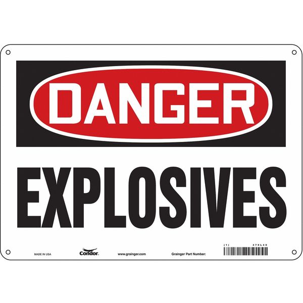 Safety Sign, 10 in Height, 14 in Width, Aluminum, Horizontal Rectangle, English, 470L40SKU G5211567Categories SafetyDescription Safety Sign, Horizontal Rectangle, Number of Printed Sides 1, English, Sign Format Traditional OSHA, Sign Legend Explosives, Sign Legend Background Color White, Sign Legend Style TextgraingerSKU: 470L40, mscSKU: , zoro_no: G5211567, mongo_id: 65bbe8069a749db82276d4c9