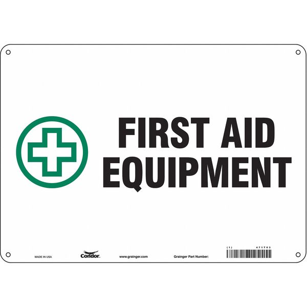 First Aid Sign, 14" Wx10" H, 0.032" Thick, 471T03SKU G5904801Categories SafetyDescription First Aid Sign, Horizontal Rectangle, Number of Printed Sides 1, English, Sign Legend First Aid Equipment, Sign Legend Background Color White, Sign Legend Style Symbol and TextgraingerSKU: 471T03, mscSKU: , zoro_no: G5904801, mongo_id: 65bbe8069a749db82276d501