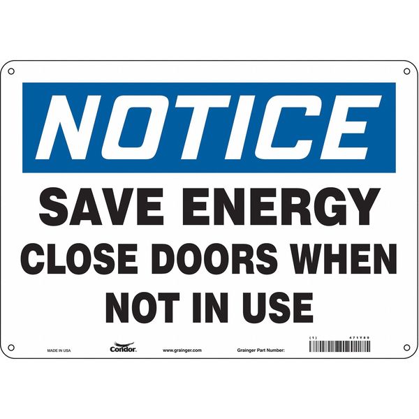 SKU G5868602Categories SafetyDescription Safety Sign, Horizontal Rectangle, Number of Printed Sides 1, English, Sign Format Traditional OSHA, Sign Legend Save Energy Close Doors When Not In Use, Sign Legend Background Color White, Sign Legend Style TextgraingerSKU: 471Y89, mscSKU: , zoro_no: G5868602, mongo_id: 65bbe8069a749db82276d42f