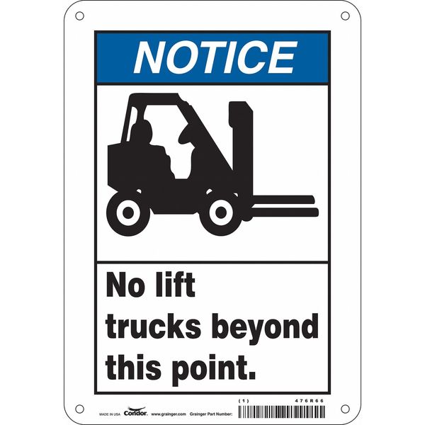 Safety Sign, 10 in Height, 7 in Width, Aluminum, Horizontal Rectangle, English, 476R66SKU G5859380Categories SafetyDescription Safety Sign, Horizontal Rectangle, Number of Printed Sides 1, English, Sign Format ANSI/OSHA Format, Sign Legend No Lift Trucks Beyond This Point., Sign Legend Background Color White, Sign Legend Style Symbol and TextgraingerSKU: 476R66, mscSKU: , zoro_no: G5859380, mongo_id: 65bbe8069a749db82276d423