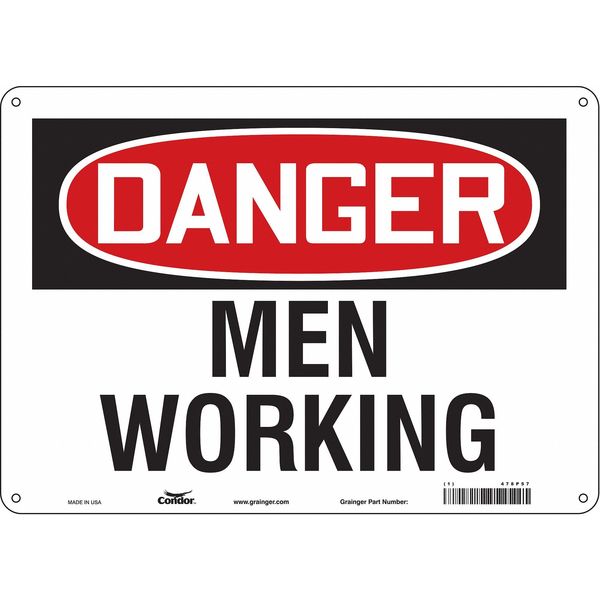 Safety Sign, 10 in Height, 14 in Width, Aluminum, Horizontal Rectangle, English, 478P57SKU G5882648Categories SafetyDescription Safety Sign, Horizontal Rectangle, Number of Printed Sides 1, English, Sign Format Traditional OSHA, Sign Legend Men Working, Sign Legend Background Color White, Sign Legend Style TextgraingerSKU: 478P57, mscSKU: , zoro_no: G5882648, mongo_id: 65bbe8069a749db82276d4db