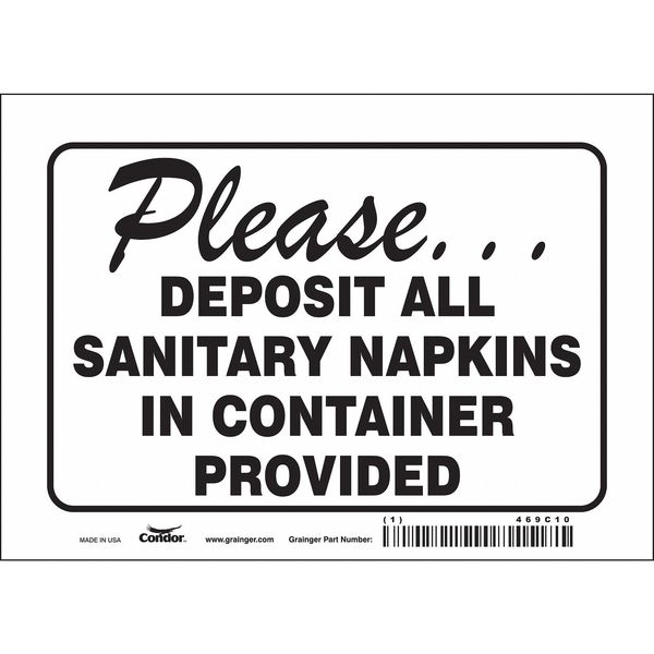 SKU G5497383Categories SafetyDescription Safety Sign, Horizontal Rectangle, Number of Printed Sides 1, English, Sign Legend Please... Deposit All Sanitary Napkins In Container Provided, Sign Legend Background Color White, Sign Legend Style TextgraingerSKU: 469C10, mscSKU: , zoro_no: G5497383, mongo_id: 65bbe8069a749db82276d33e
