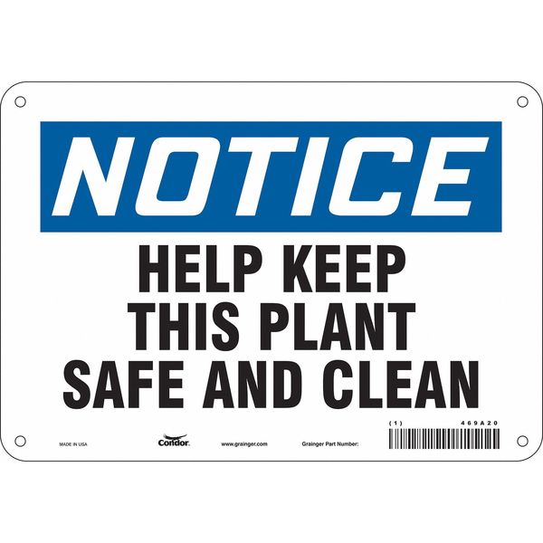 SKU G5783972Categories SafetyDescription Safety Sign, Vertical Rectangle, Number of Printed Sides 1, English, Sign Format Traditional OSHA, Sign Legend Help Keep This Plant Safe And Clean, Sign Legend Background Color White, Sign Legend Style TextgraingerSKU: 469A20, mscSKU: , zoro_no: G5783972, mongo_id: 65bbe8069a749db82276d4a1