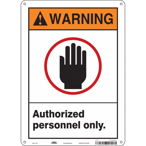SKU G5900568Categories SafetyDescription Safety Sign, Vertical Rectangle, Number of Printed Sides 1, English, Sign Format Traditional OSHA, Sign Legend Authorized Personnel Only., Sign Legend Background Color White, Sign Legend Style Symbol and TextgraingerSKU: 472Y41, mscSKU: , zoro_no: G5900568, mongo_id: 65bbe8069a749db82276d384