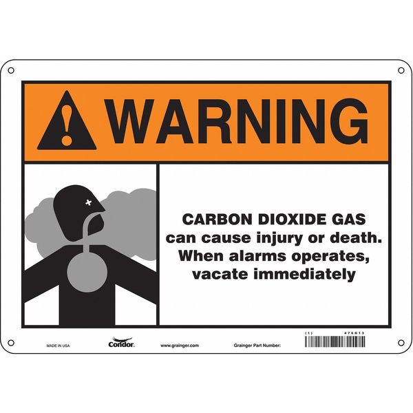 SKU G5822037Categories SafetyDescription Safety Sign, Horizontal Rectangle, Number of Printed Sides 1, English, Sign Format ANSI/OSHA Format, Sign Legend Carbon Dioxide Gas Can Cause Injury Or Death. When Alarm Operates, Vacate Immediately., Sign Legend Background Color White, Sign Legend Style Symbol and TextgraingerSKU: 476G13, mscSKU: , zoro_no: G5822037, mongo_id: 65bbe8069a749db82276d4a5