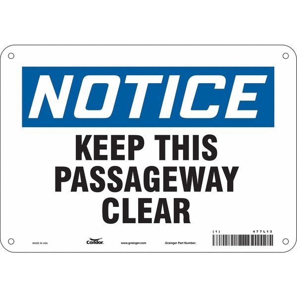 SKU G5848969Categories SafetyDescription Safety Sign, Vertical Rectangle, Number of Printed Sides 1, English, Sign Format Traditional OSHA, Sign Legend Keep This Passageway Clear, Sign Legend Background Color White, Sign Legend Style TextgraingerSKU: 477L13, mscSKU: , zoro_no: G5848969, mongo_id: 65bbe8069a749db82276d48c