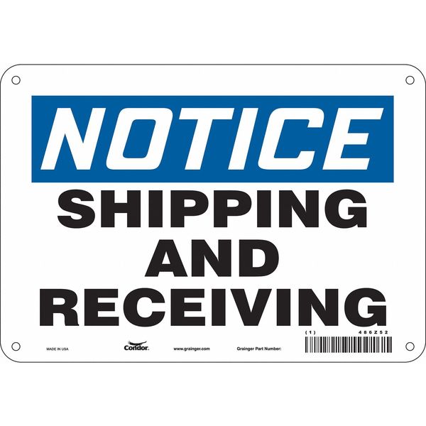 Safety Sign, 7 in Height, 10 in Width, Aluminum, Vertical Rectangle, English, 486Z52SKU G6266263Categories SafetyDescription Safety Sign, Vertical Rectangle, Number of Printed Sides 1, English, Sign Format Traditional OSHA, Sign Legend Shipping And Receiving, Sign Legend Background Color White, Sign Legend Style TextgraingerSKU: 486Z52, mscSKU: , zoro_no: G6266263, mongo_id: 65bbe8069a749db82276d512