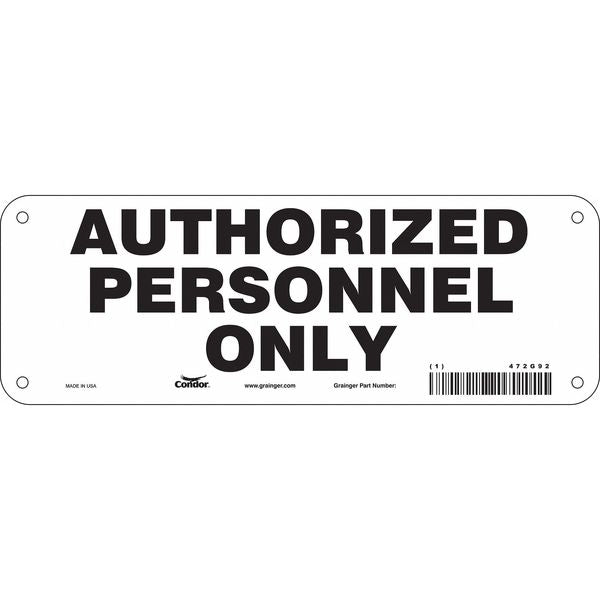 SKU G5270769Categories SafetyDescription Safety Sign, Vertical Rectangle, Number of Printed Sides 1, English, Sign Format Other Format, Sign Legend Authorized Personnel Only, Sign Legend Background Color White, Sign Legend Style TextgraingerSKU: 472G92, mscSKU: , zoro_no: G5270769, mongo_id: 65bbe8069a749db82276d51d