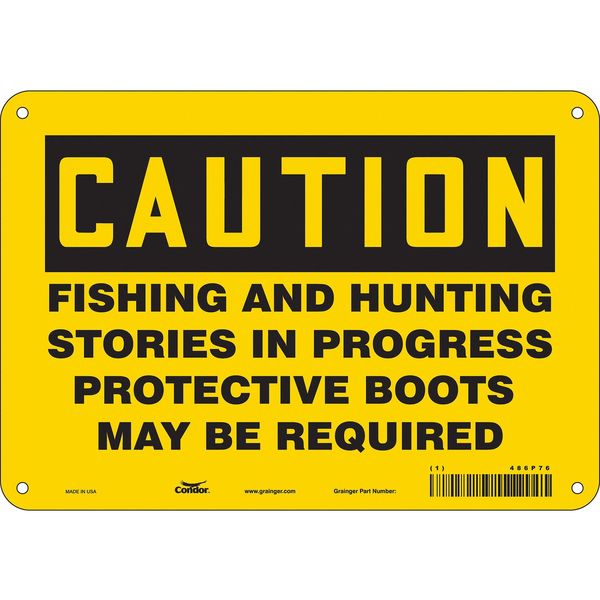 Safety Sign, 7 in Height, 10 in Width, Aluminum, Vertical Rectangle, English, 486P76SKU G6279922Categories SafetyDescription Safety Sign, Vertical Rectangle, Number of Printed Sides 1, English, Sign Format Traditional OSHA, Sign Legend Fishing And Hunting Stories In Progress Protective Boots May Be Required, Sign Legend Background Color Yellow, Sign Legend Style TextgraingerSKU: 486P76, mscSKU: , zoro_no: G6279922, mongo_id: 65bbe8069a749db82276d451