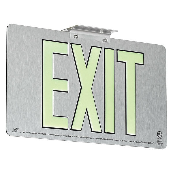 Photoluminescent Single-Face Brushed Alm Exit Sign 50FT View Distance