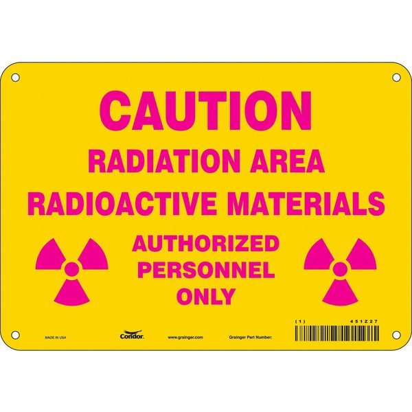 $18.74 / eachWeb priceRadiation Safety Sign, 7 in H, 10 in W, Aluminum, Vertical Rectangle, 451Z27SKU G5174491Categories SafetyDescription Radiation Safety Sign, Vertical Rectangle, Number of Printed Sides 1, English, Sign Format Other Format, Sign Legend Caution Radiation Area Radioactive Materials Authorized Personnel Only, Sign Legend Background Color Yellow, Sign Legend Style Symbol and TextgraingerSKU: 451Z27, mscSKU: , zoro_no: G5174491, mongo_id: 65bbe80722d7a989a98d1301