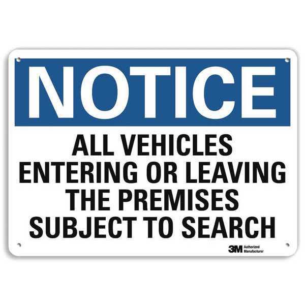 SKU G2764916Categories SafetyDescription Notice Sign, Vertical Rectangle, Number of Printed Sides 1, English, Sign Format Traditional OSHA, Sign Legend All Vehicles Entering Or Leaving The Premises Subject To Search, Sign Legend Background Color White, Sign Legend Style TextgraingerSKU: 34JH81, mscSKU: , zoro_no: G2764916, mongo_id: 65bbe8069a749db82276d0a3
