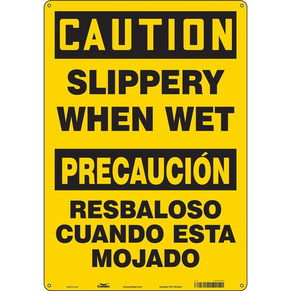 $39.86 / eachWeb priceSafety Sign, 20 in Height, 14 in Width, Aluminum, Vertical Rectangle, English, SpanishSKU G5622327Categories SafetyDescription Safety Sign, Vertical Rectangle, Number of Printed Sides 1, English, Spanish, Sign Format Traditional OSHA, Sign Legend Slippery When Wet/Resbaloso Cuando Esta Mojado, Sign Legend Background Color Yellow, Sign Legend Style TextgraingerSKU: 469P06, mscSKU: , zoro_no: G5622327, mongo_id: 65bbe80722d7a989a98d1552
