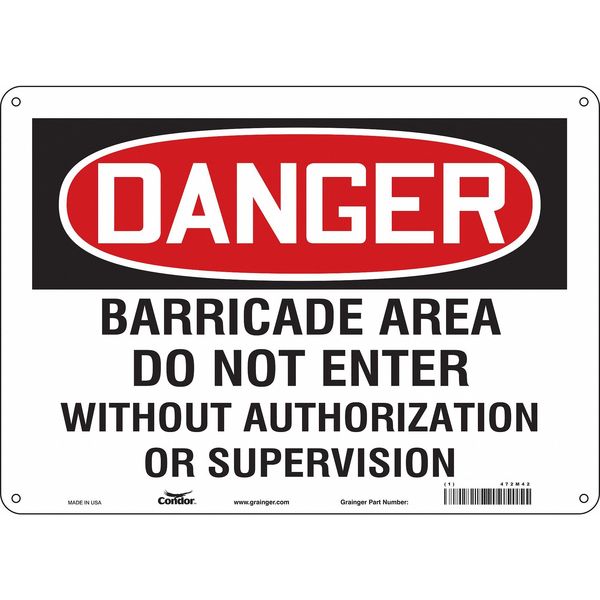 $25.19 / eachWeb priceSafety Sign, 10 in Height, 14 in Width, Aluminum, Horizontal Rectangle, English, 472M35SKU G5875167Categories SafetyDescription Safety Sign, Horizontal Rectangle, Number of Printed Sides 1, English, Sign Format Traditional OSHA, Sign Legend Barricade Area Do Not Enter Without Authorization Or Supervision, Sign Legend Background Color White, Sign Legend Style TextgraingerSKU: 472M35, mscSKU: , zoro_no: G5875167, mongo_id: 65bbe80722d7a989a98d13ce