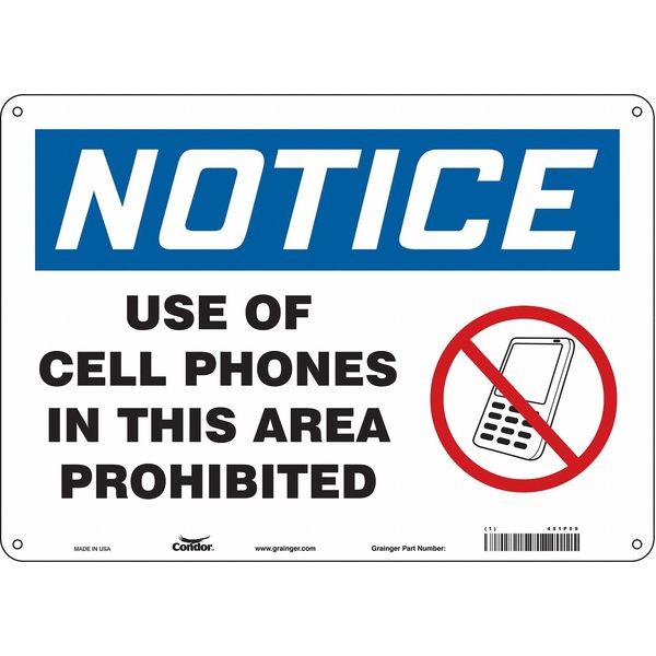 SKU G5904031Categories SafetyDescription Safety Sign Cell Phone, Horizontal Rectangle, Number of Printed Sides 1, English, Sign Legend Use Of Cell Phones In This Area Prohibited, Sign Legend Background Color White, Sign Legend Style Symbol and TextgraingerSKU: 451P59, mscSKU: , zoro_no: G5904031, mongo_id: 65bbe80722d7a989a98d14c3