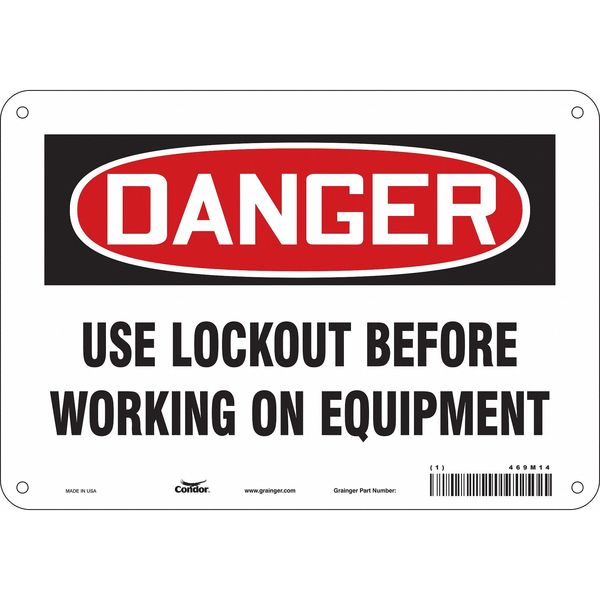 $10.36 / eachWeb priceSafety Sign, 7 in Height, 10 in Width, Polyethylene, Vertical Rectangle, English, 469M14SKU G5064451Categories SafetyDescription Safety Sign, Vertical Rectangle, Number of Printed Sides 1, English, Sign Format Traditional OSHA, Sign Legend Use Lockout Before Working On Equipment, Sign Legend Background Color White, Sign Legend Style TextgraingerSKU: 469M14, mscSKU: , zoro_no: G5064451, mongo_id: 65bbe80722d7a989a98d1341