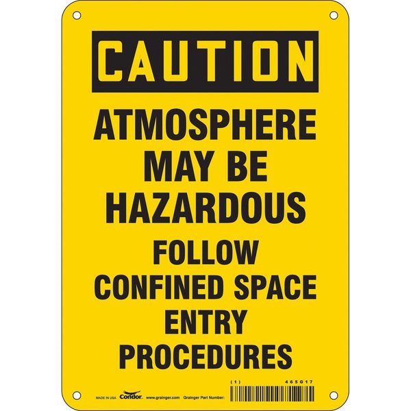 SKU G5860561Categories SafetyDescription Safety Sign, Horizontal Rectangle, Number of Printed Sides 1, English, Sign Format Traditional OSHA, Sign Legend Atmosphere May Be Hazardous Follow Confined Space Entry Procedures, Sign Legend Background Color Yellow, Sign Legend Style TextgraingerSKU: 465G17, mscSKU: , zoro_no: G5860561, mongo_id: 65bbe80722d7a989a98d14fd