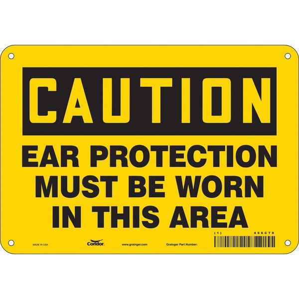 $18.74 / eachWeb priceSafety Sign, 7 in Height, 10 in Width, Aluminum, Vertical Rectangle, English, 466C78SKU G5818963Categories SafetyDescription Safety Sign, Vertical Rectangle, Number of Printed Sides 1, English, Sign Format Traditional OSHA, Sign Legend Ear Protection Must Be Worn In This Area, Sign Legend Background Color Yellow, Sign Legend Style TextgraingerSKU: 466C78, mscSKU: , zoro_no: G5818963, mongo_id: 65bbe80722d7a989a98d1389