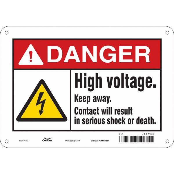 $18.74 / eachWeb priceSafety Sign, 7 in Height, 10 in Width, Aluminum, Vertical Rectangle, English, 479T39SKU G5893960Categories SafetyDescription Safety Sign, Vertical Rectangle, Number of Printed Sides 1, English, Sign Format ANSI/OSHA Format, Sign Legend High Voltage. Keep Away. Contact Will Result In Serious Shock Or Death., Sign Legend Background Color White, Sign Legend Style Symbol and TextgraingerSKU: 479T39, mscSKU: , zoro_no: G5893960, mongo_id: 65bbe80722d7a989a98d13fb
