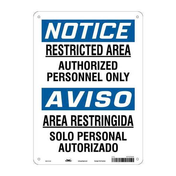 SKU G5244771Categories SafetyDescription Safety Sign, Vertical Rectangle, Number of Printed Sides 1, English, Spanish, Sign Format Traditional OSHA, Sign Legend Restricted Area Authorized Personnel Only/Area Restringida Solo Personel Autorizado, Sign Legend Background Color White, Sign Legend Style TextgraingerSKU: 472V60, mscSKU: , zoro_no: G5244771, mongo_id: 65bbe80722d7a989a98d137d