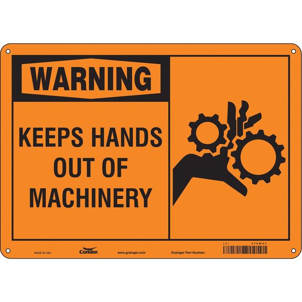 $25.19 / eachWeb priceSafety Sign, 10 in Height, 14 in Width, Aluminum, Horizontal Rectangle, English, 478W53SKU G5861867Categories SafetyDescription Safety Sign, Horizontal Rectangle, Number of Printed Sides 1, English, Sign Format Traditional OSHA, Sign Legend Keep Hands Out Of Machinery, Sign Legend Background Color Orange, Sign Legend Style Symbol and TextgraingerSKU: 478W53, mscSKU: , zoro_no: G5861867, mongo_id: 65bbe80722d7a989a98d1406