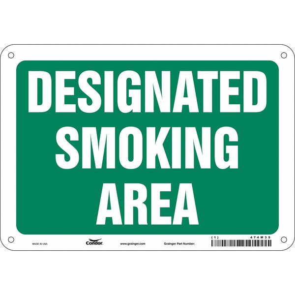 Safety Sign, 7" H, 10" W, Vertical Rectangle, English, 474M35SKU G5125202Categories SafetyDescription Safety Sign, Vertical Rectangle, Number of Printed Sides 1, English, Sign Format Other Format, Sign Legend Designated Smoking Area, Sign Legend Background Color Green, Sign Legend Style TextgraingerSKU: 474M35, mscSKU: , zoro_no: G5125202, mongo_id: 65bbe76d3aaddbd5a9093a2e