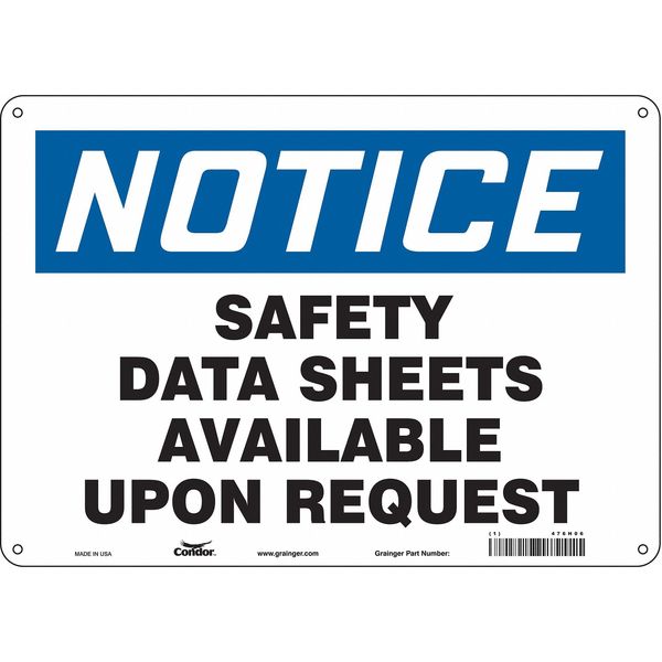 Safety Sign, 10 inx14 in, AluminumSKU G5790981Categories SafetyDescription Safety Sign, Horizontal Rectangle, Number of Printed Sides 1, English, Sign Format Traditional OSHA, Sign Legend Safety Data Sheets Available Upon Request, Sign Legend Background Color White, Sign Legend Style TextgraingerSKU: 476H06, mscSKU: , zoro_no: G5790981, mongo_id: 65bbe76d3aaddbd5a9093a18