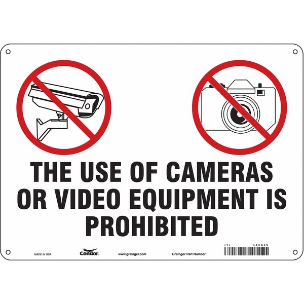 SKU G5062799Categories SafetyDescription Security Sign, Horizontal Rectangle, Number of Printed Sides 1, English, Sign Legend The Use Of Cameras Or Video Equipment Is Prohibited, Sign Legend Background Color White, Sign Legend Style Symbol and TextgraingerSKU: 453N45, mscSKU: , zoro_no: G5062799, mongo_id: 65bbe76d3aaddbd5a9093a08