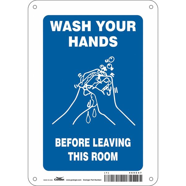 Safety Sign, 10 in Height, 7 in Width, Aluminum, Horizontal Rectangle, English, 469C57SKU G5820232Categories SafetyDescription Safety Sign, Horizontal Rectangle, Number of Printed Sides 1, English, Sign Format Other Format, Sign Legend Wash Hands Before Leaving This Room, Sign Legend Background Color Blue, Sign Legend Style Symbol and TextgraingerSKU: 469C57, mscSKU: , zoro_no: G5820232, mongo_id: 65bbe76d3aaddbd5a90939ec