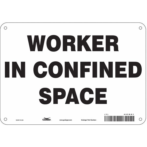Safety Sign, 7 in Height, 10 in Width, Aluminum, Vertical Rectangle, English, 465G01SKU G5828827Categories SafetyDescription Safety Sign, Vertical Rectangle, Number of Printed Sides 1, English, Sign Format Other Format, Sign Legend Worker In Confined Space, Sign Legend Background Color White, Sign Legend Style TextgraingerSKU: 465G01, mscSKU: , zoro_no: G5828827, mongo_id: 65bbe76d3aaddbd5a9093a28