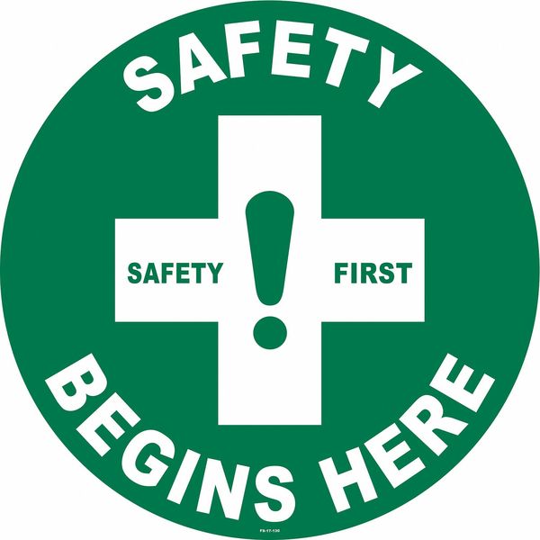 SKU G6309331Categories SafetyDescription Anti-Slip Floor Sign, Circle, Number of Printed Sides 1, English, Sign Format Other Format, Sign Legend Safety Begins Here, Sign Legend Background Color Green, Sign Legend Style Symbol and Text, Sign Legend Character Height 1 5/8 ingraingerSKU: 467F57, mscSKU: , zoro_no: G6309331, mongo_id: 65bbe76d3aaddbd5a9093c08
