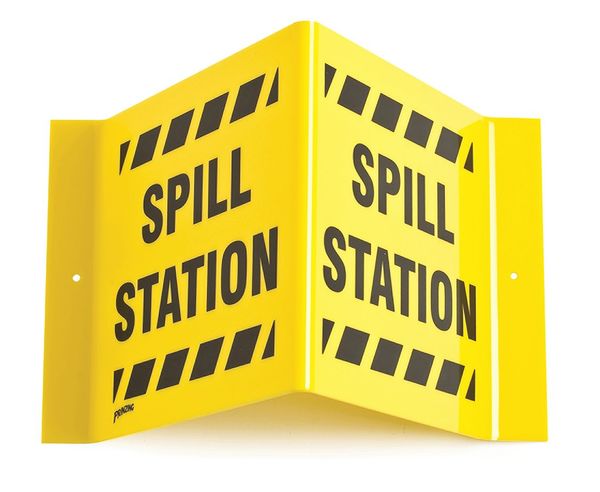 Spill Station Sign, 8" Height, 15" Width, Acrylic, Rectangle, English
