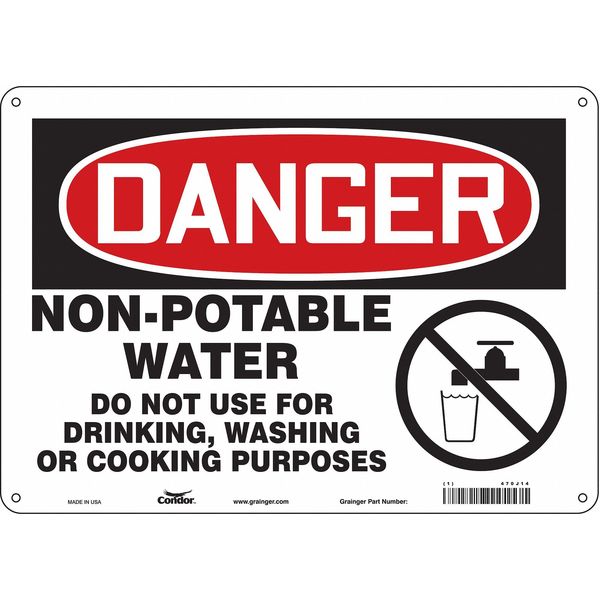 Safety Sign, 10 in Height, 14 in Width, Aluminum, Horizontal Rectangle, English, 470J14SKU G5363869Categories SafetyDescription Safety Sign, Horizontal Rectangle, Number of Printed Sides 1, English, Sign Format Traditional OSHA, Sign Legend Non-Potable Water Do Not Use For Drinking, Washing Or Cooking Purposes, Sign Legend Background Color White, Sign Legend Style Symbol and TextgraingerSKU: 470J14, mscSKU: , zoro_no: G5363869, mongo_id: 65bbe76d3aaddbd5a9093a37