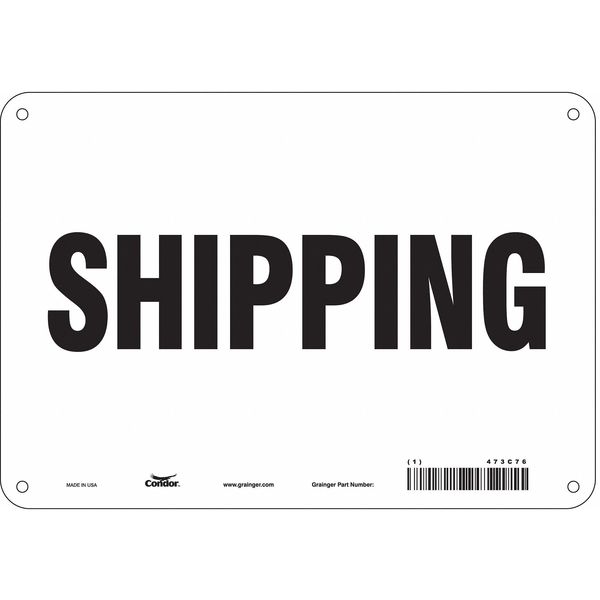 Safety Sign, 7 in Height, 10 in Width, Aluminum, Vertical Rectangle, English, 473C76SKU G5610871Categories SafetyDescription Safety Sign, Vertical Rectangle, Number of Printed Sides 1, English, Sign Format Other Format, Sign Legend Shipping, Sign Legend Background Color White, Sign Legend Style TextgraingerSKU: 473C76, mscSKU: , zoro_no: G5610871, mongo_id: 65bbe76d3aaddbd5a909394d