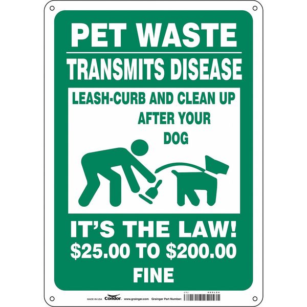 Safety Sign, 14 in Height, 10 in Width, Aluminum, Vertical Rectangle, English, 485L24SKU G6258660Categories SafetyDescription Safety Sign, Vertical Rectangle, Number of Printed Sides 1, English, Sign Legend Pet Waste Transmits Disease Leash-Curb And Clean Up After Your Dog It'S The Law! $25 To $200 Fine, Sign Legend Background Color Green, White, Sign Legend Style Symbol and TextgraingerSKU: 485L24, mscSKU: , zoro_no: G6258660, mongo_id: 65bbe76d3aaddbd5a909391b