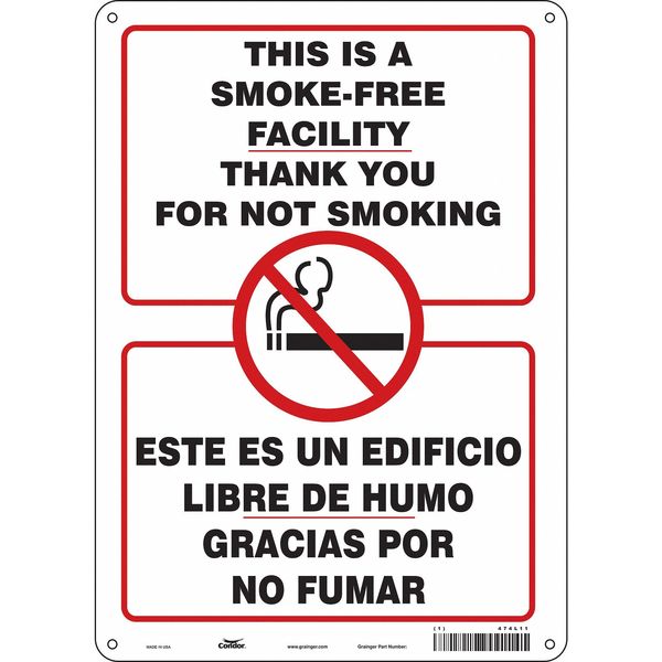 Safety Sign, 14 in H, 10" W, Vertical Rectangle, English, Spanish, 474L11SKU G5072669Categories SafetyDescription Safety Sign, Vertical Rectangle, Number of Printed Sides 1, English, Spanish, Sign Format Other Format, Sign Legend This Is A Smoke- Free Facility Thank You For Not Smoking/Este Es Un Edificio Libre De Humo Gracias Por No Fumar, Sign Legend Background Color White, Sign Legend Style Symbol and TextgraingerSKU: 474L11, mscSKU: , zoro_no: G5072669, mongo_id: 65bbe76d3aaddbd5a9093a4c