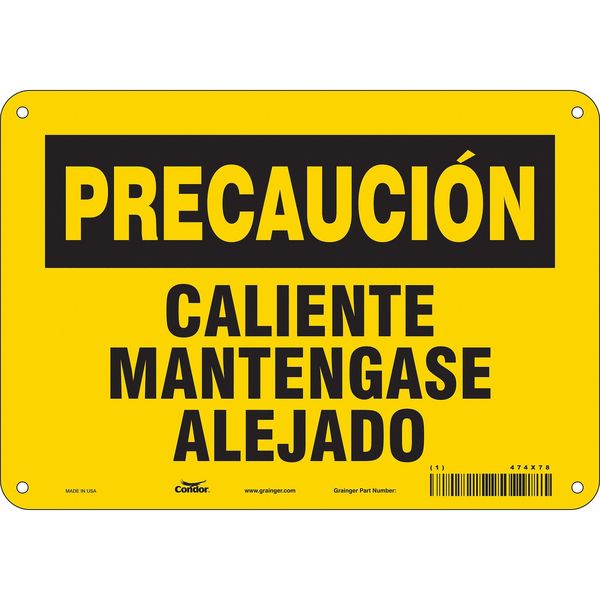 Danger Sign, 10" W x 7" H, 0.032" ThickSKU G5591700Categories SafetyDescription Safety Sign, Vertical Rectangle, Number of Printed Sides 1, Spanish, Sign Format Traditional OSHA, Sign Legend Caliente Mantengase Alejado, Sign Legend Background Color Yellow, Sign Legend Style Text$14.74 / eachWeb price -