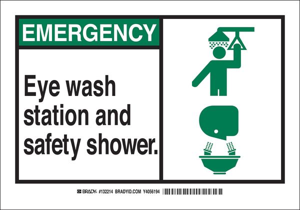 SKU G1212913Categories SafetyDescription Eye Wash/Safety Shower Sign, Sign Subject Matter Eyewash and Shower, Height 10 in, Width 14 in, Sign Material Aluminum, Sign Mounting Style With Mounting Holes, Header Emergency, Legend Eye Wash Station and Safety Shower, Printed Language English, Sign Shape Rectangle$31.11 / eachWeb price
