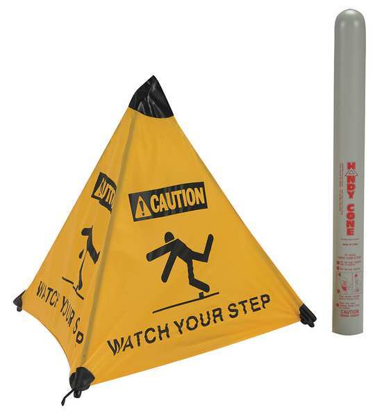 SKU G4172341Categories SafetyDescription Folding Safety Cone, Number of Printed Sides 4, Printed Language English, Sign Header Caution, Sign Legend Watch Your Step, Mirror Print nograingerSKU: 3JVA4, mscSKU: , zoro_no: G4172341, mongo_id: 65bbe7933aaddbd5a90a227c