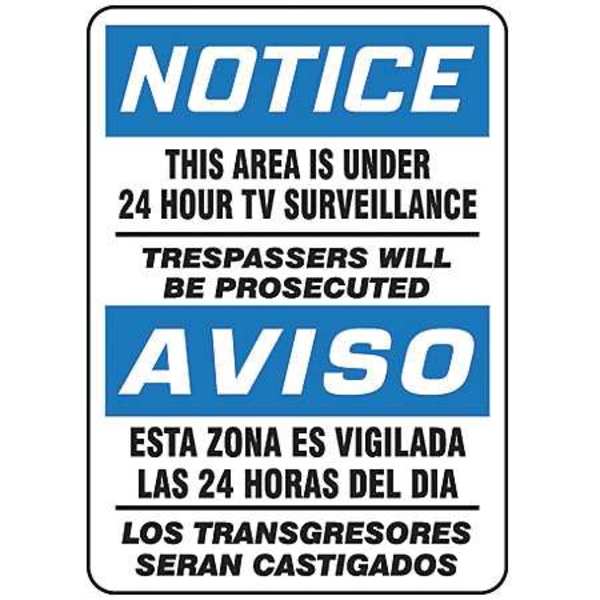 Spanish-Bilingual Notice Sign, 14 in H, 10 in W, Aluminum, Rectangle, English, Spanish, SBMASE812VASKU G1735747Categories SafetyDescription Spanish-Bilingual Notice Sign, Sign Subject Matter Security and Surveillance, Height 14 in, Width 10 in, Sign Material Aluminum, Sign Mounting Style With Mounting Holes, Header Notice/Aviso, Legend This Area Is Under 24 Hour TV Surveillance Trespassers Will Be Prosecuted/Esta Zona Es Vigilada Las 24 Horas Del Dia Los Transgresores Seran Castigados, Printed Language English, Spanish, Sign Shape RectanglegraingerSKU: 773G85, mscSKU: , zoro_no: G1735747, mongo_id: 65bbe7933aaddbd5a90a226e