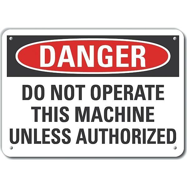 SKU G9497166Categories SafetyDescription Plastic Machine & Operation Danger Sign, Horizontal Rectangle, Number of Printed Sides 1, English, Sign Format Traditional OSHA, Sign Legend Do Not Operate This Machine Unless Authorized, Sign Legend Background Color White, Sign Legend Style TextgraingerSKU: 64RT14, mscSKU: , zoro_no: G9497166, mongo_id: 65bbe7453aaddbd5a9084e47