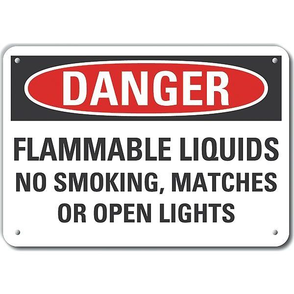 SKU G9497918Categories SafetyDescription Plastic Flammable Liquid Danger Sign, Horizontal Rectangle, Number of Printed Sides 1, English, Sign Format Traditional OSHA, Sign Legend Flammable Liquids No Smoking, Matches Or Open Lights, Sign Legend Background Color White, Sign Legend Style TextgraingerSKU: 64RT96, mscSKU: , zoro_no: G9497918, mongo_id: 65bbe7453aaddbd5a9084e81