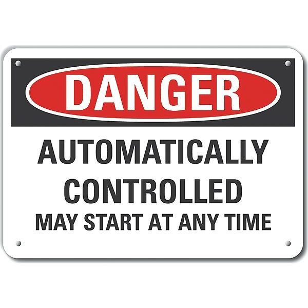 SKU G9497315Categories SafetyDescription Plastic Automatic Equipment Danger Sign, Horizontal Rectangle, Number of Printed Sides 1, English, Sign Format Traditional OSHA, Sign Legend Automatically Controlled May Start At Any Time, Sign Legend Background Color White, Sign Legend Style TextgraingerSKU: 64RT32, mscSKU: , zoro_no: G9497315, mongo_id: 65bbe7379a749db8227254c9