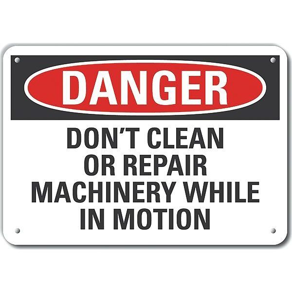 SKU G9497470Categories SafetyDescription Plastic Machine & Operation Danger Sign, Horizontal Rectangle, Number of Printed Sides 1, English, Sign Format Traditional OSHA, Sign Legend Don't Clean Or Repair Machinery While In Motion, Sign Legend Background Color White, Sign Legend Style TextgraingerSKU: 64RT46, mscSKU: , zoro_no: G9497470, mongo_id: 65bbe7453aaddbd5a9084e2b