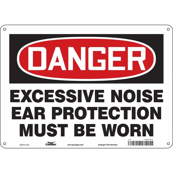 SKU G5828127Categories SafetyDescription Safety Sign, Horizontal Rectangle, Number of Printed Sides 1, English, Sign Format Traditional OSHA, Sign Legend Excessive Noise Ear Protection Must Be Worn, Sign Legend Background Color White, Sign Legend Style Text Safety Sign, 10 in Height, 14 in Width, Aluminum, Horizontal Rectangle, English, 466F09